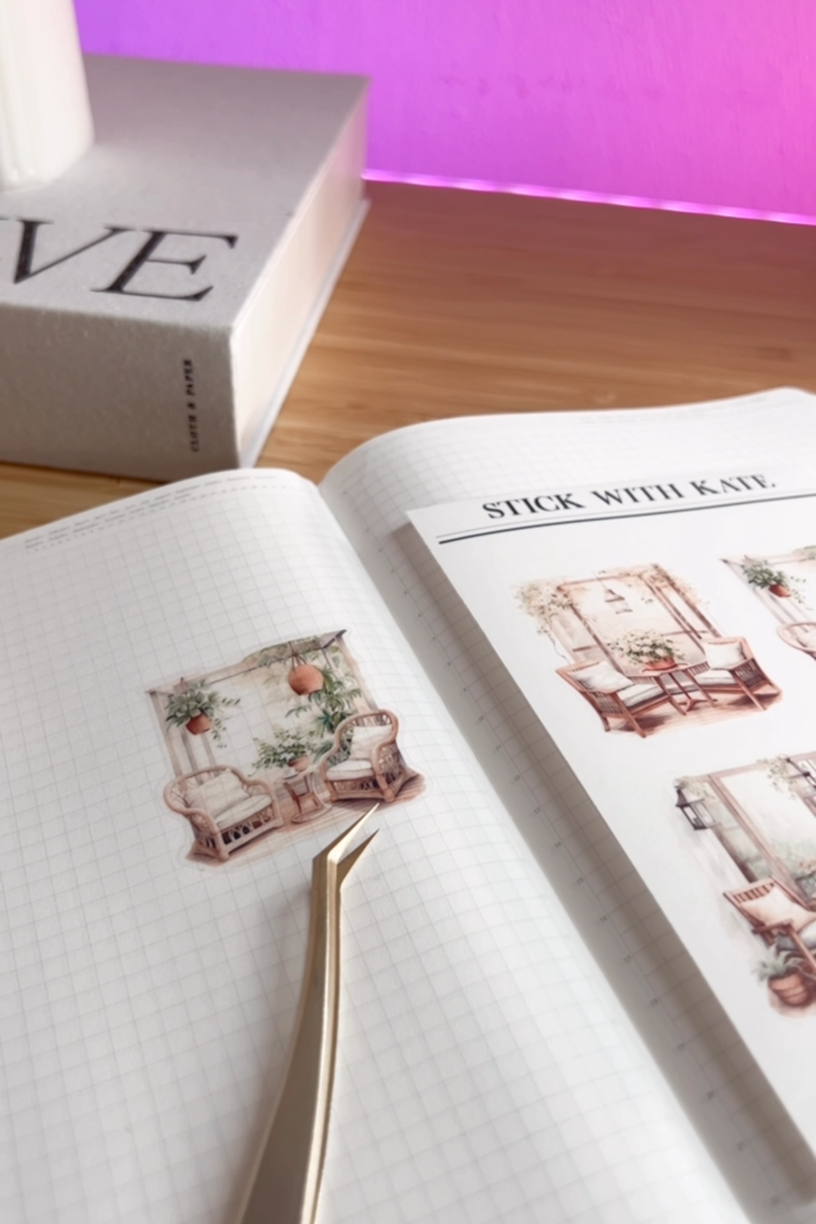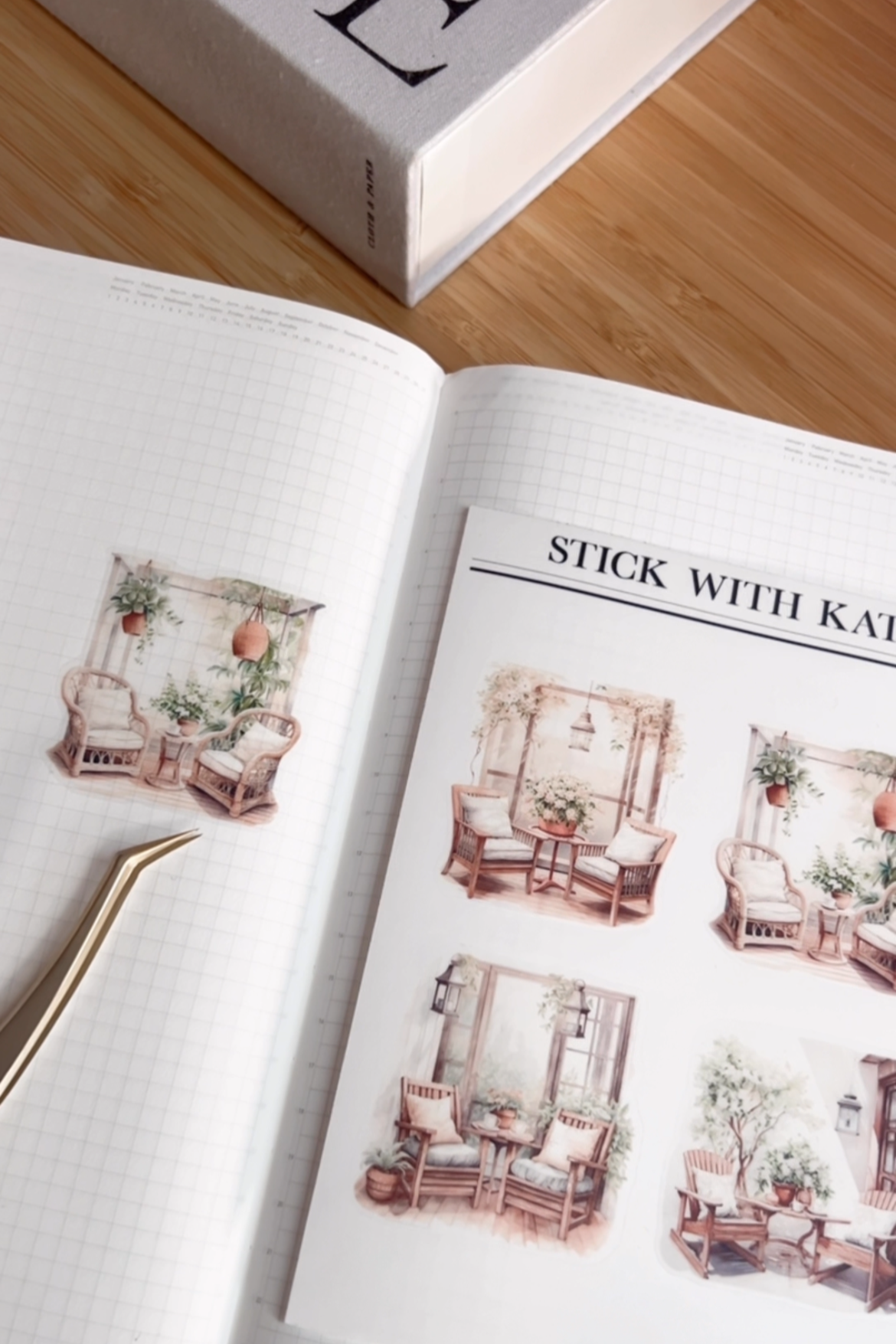 - One sheet of high-quality stickers featuring four different cozy porch scenes