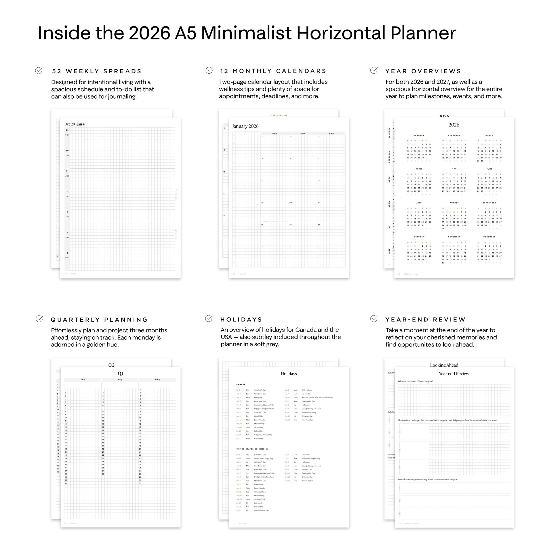 2026 Minimalist Horizontal Planner A5 | Hardcover | 120gsm