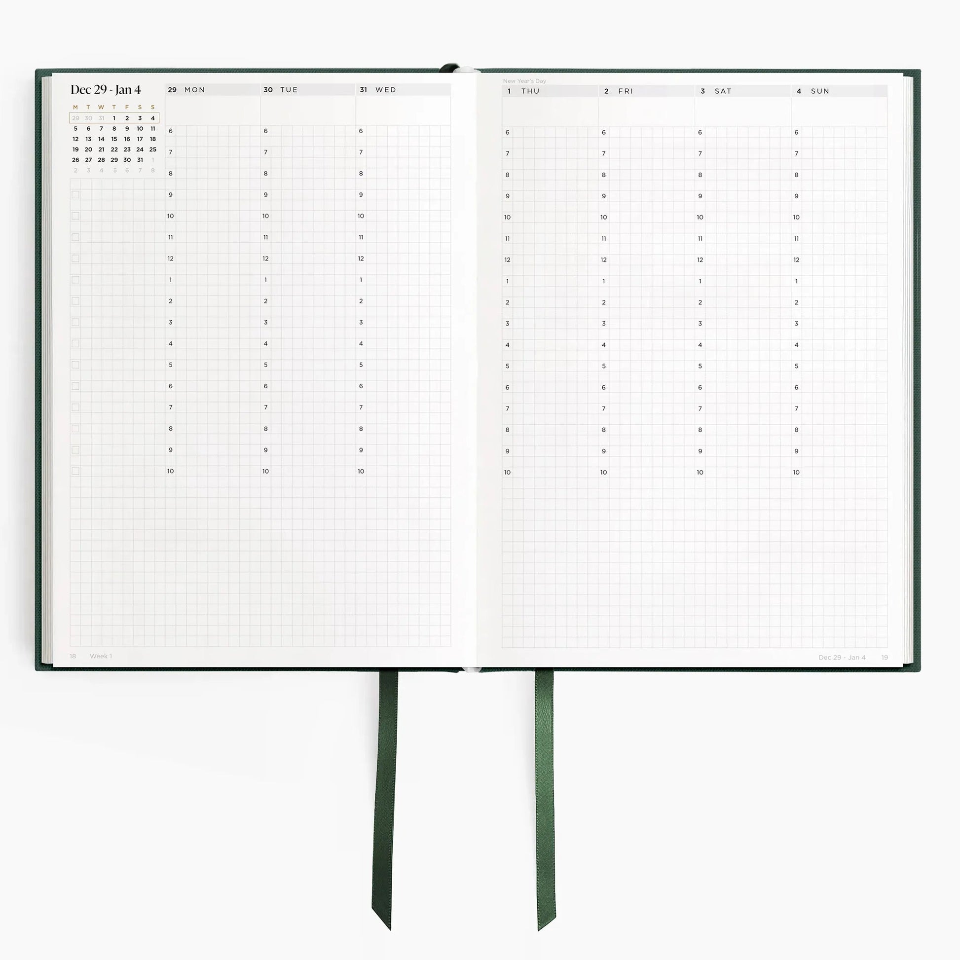 Der B5 Minimalist ist eine schlankere, größere Version unseres vertikalen Wochenplaners – perfekt für alle, die mehr Platz bevorzugen und keinen geführten Journaling-Teil benötigen.