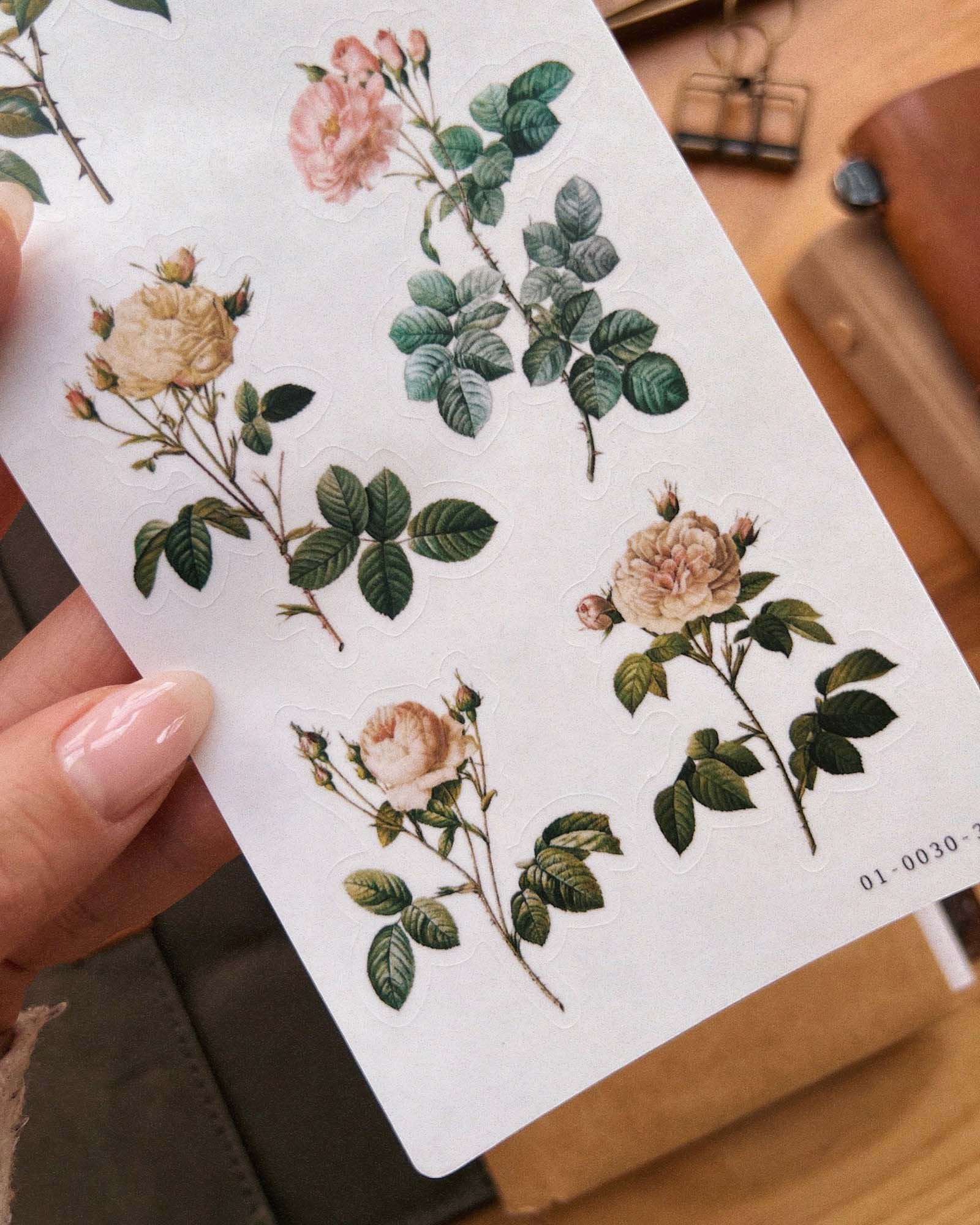 - Botanische Studienillustrationen von Rosen (weiße und neutrale Töne)
